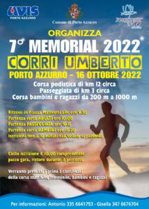 Organizzato dal Comune di Porto Azzurro in collaborazione con Avis e Diversamente Sani, si terrà domenica 16 ottobre il 7° Memorial Corri Umberto. Non è solo una giornata di sport ma una grande festa all’insegna della solidarietà e dell’aggregazione. Un appuntamento che si ripete ogni anno dal 2015, intitolato al ricordo di Umberto Pecorario, giovane longonese vittima di un incidente stradale. Il programma della manifestazione prevede la corsa podistica di 12 km su un percorso impegnativo che attraversa i luoghi più suggestivi di Porto Azzurro fino ad arrivare al laghetto di Terranera e la passeggiata di 3 km nei dintorni del paese. Per bambini e ragazzi sono previste invece gare da 200 metri a 1 chilometro, a seconda dell’età, tra la piazza e il porto del paese. Le iscrizioni si ricevono fino a 10 minuti prima ella gara. Verranno premiati i primi tre classificati delle tre categorie. Per informazioni 335 6641793 Antonio oppure 347 6676704 Gisella.