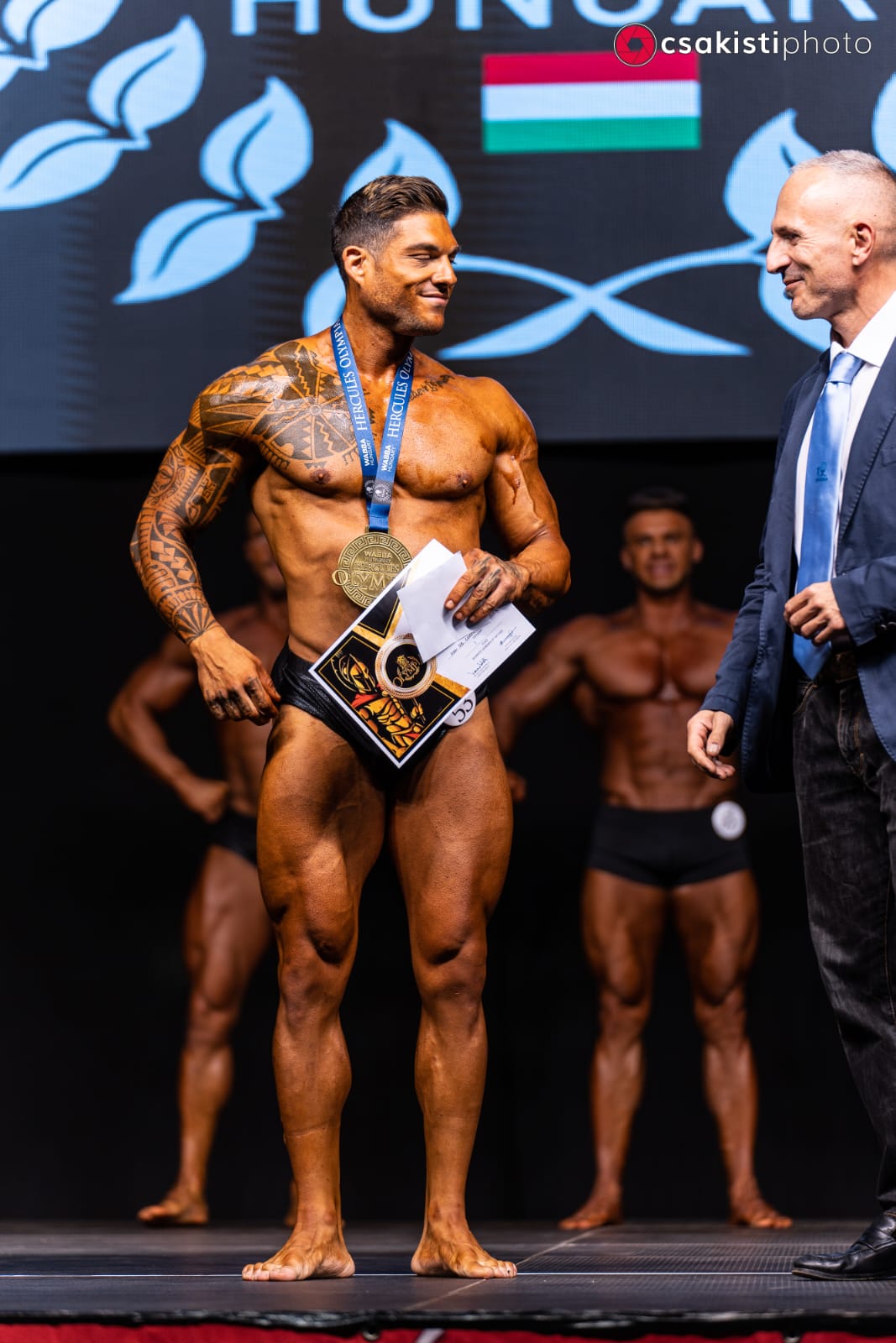 Ha cominciato a praticare questa disciplina all’età di 14 anni, gli è sempre piaciuto avere un fisico muscoloso, scolpito. Prima solo per piacere personale e a livello amatoriale, adesso ha voluto provare la competizione e così ha intensificato allenamenti e la preparazione fino al primo posto a Budapest ai campionati europei concorso Wabba International. Lui è l’elbano Samuel Monni, 32 anni, imprenditore con il pallino della cultura fisica. Sei mesi di allenamenti fino a sei volte a settimana per due ore al giorno, in compagnia del preparatore Giovanni Leonelli. Non solo allenamenti, anche una dieta ferrea per aumentare il più possibile la massa e la definizione muscolare. Samuel ha gareggiato insieme a 300 atleti provenienti da tutto il mondo, nelle varie discipline del Body Building, ( sei nella sua categoria). Appoggiato dalla famiglia, con molti sacrifici è riuscito a conciliare il suo lavoro di imprenditore edile con l’attività sportiva Solo una soddisfazione per il momento, ma mai dire mai.