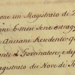 “ …il popolo compone un magistrato di 24 Persone le più civili e tra queste ogni sei mesi se ne estraggono tre per un capo anziano e due anziani residenti .Questo Magistrato si unisce sempre davanti al Governatore e depende dalle deliberazioni del Magistrato dei Nove… “