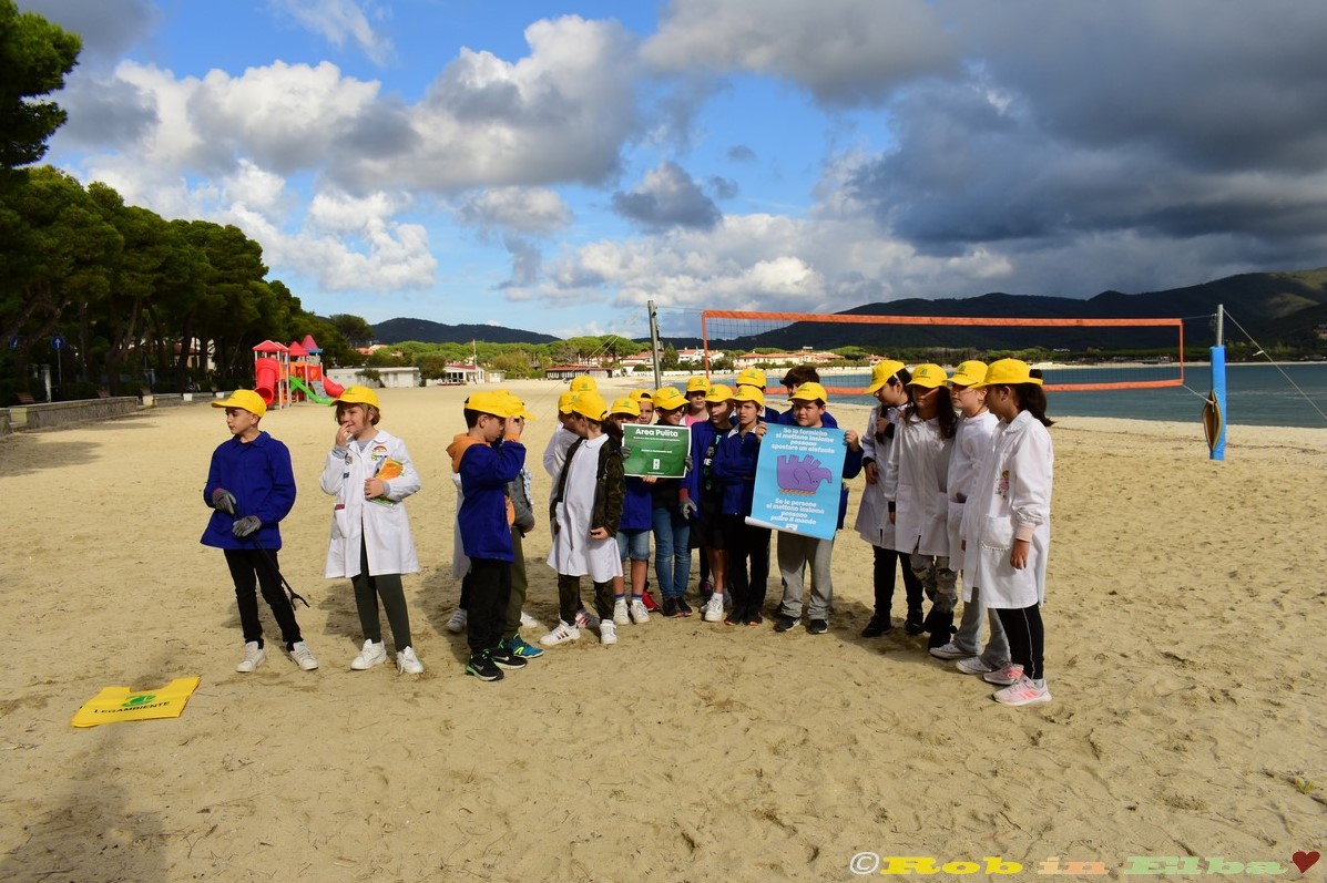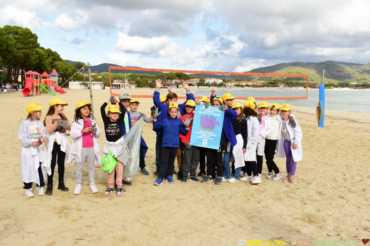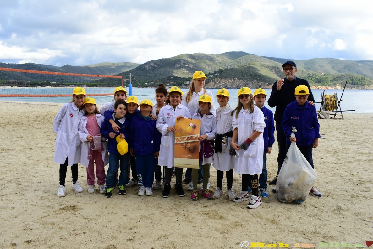 Armati di guanti e pinze, con i loro cappellini gialli e le loro pettorine, i bambini e le bambine si sono distribuiti lungo la spiaggia di Marina di Campo, dal Club del mare fino alla pineta, per ripulirla dei rifiuti portati dal mare e, soprattutto, da quelli abbandonati da visitatori e bagnanti ben poco educati.