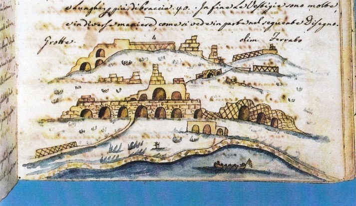 Le strutture individuate in piano, in opera cementizia e in opera reticolata con pietre (cubilia) dello stesso tipo e colore (serpentino e calcare) delle strutture monumentali delle Grotte, una volta documentate, sono state ricoperte in quanto si trovano in aree di viabilità e parcheggio.