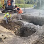 Le ipotesi sono state confermate anche questa volta, sia per la continuità delle strutture della villa a lato del piazzale del parcheggio e sotto la strada provinciale, sia per l’individuazione di nuove strutture afferenti probabilmente alla cisterna superiore.