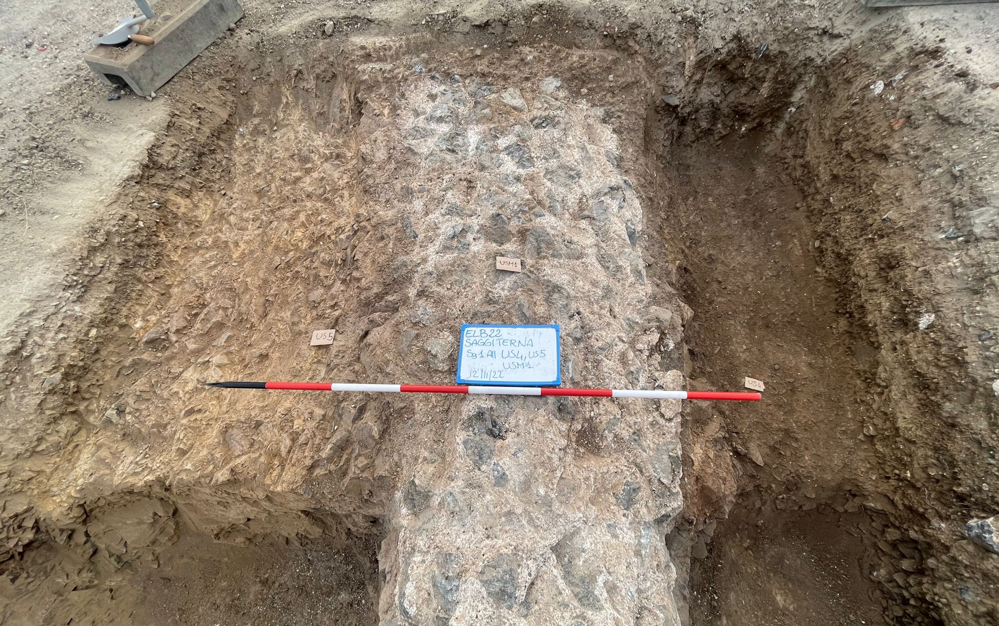 Il 10 novembre 2022 nell’ambito dei lavori effettuati da Terna, gestore della rete elettrica nazionale, per la realizzazione della seconda tratta in cavo del collegamento 132 kV S.Giuseppe – Portoferraio, approvati dalla Soprintendenza di Pisa e Livorno con prescrizioni archeologiche, venivano eseguiti ulteriori saggi archeologici nella zona delle Grotte richiesti a seguito dei rinvenimenti avvenuti durante gli scavi del febbraio scorso.