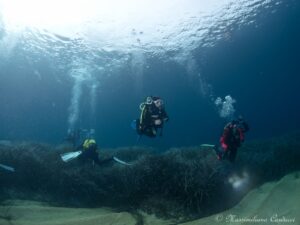 Tutti attrezzati con fotocamere ci siamo immersi e fin dai primi metri abbiamo subito potuto osservare i fiori della Posidonia con gli allievi soddisfatti che scattavano foto a raffica.