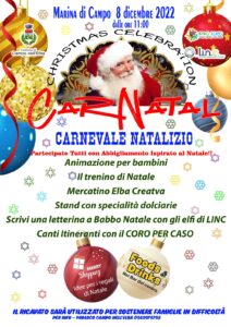 È uno stravagante evento, quello organizzato dalla Proloco di Campo nell’Elba, con il patrocinio ed il contributo del Comune. L’8 dicembre, a Marina di Campo, si festeggia il “CarNatal”, un carnevale natalizio con un ricco programma, per trascorrere, grandi e piccini, una giornata molto divertente, anzi divertentissima.