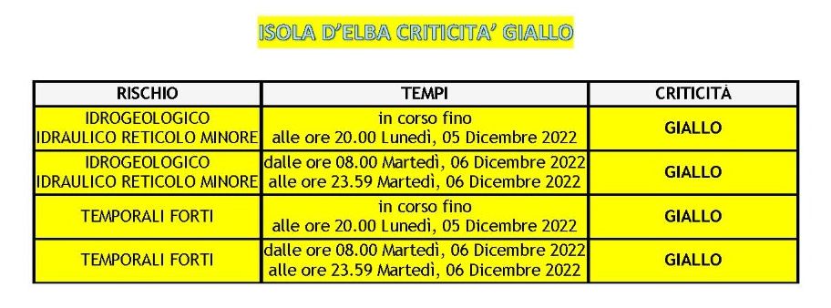 Un’allerta meteo gialla per pioggia e temporali forti è già in corso e un’altra sarà valida dalle ore 8 di domani, martedi 6 dicembre, per tutta la giornata.