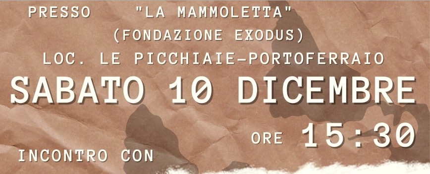 Sabato 10 dicembre, alle ore 15:30, presso la sede della comunità Exodus di Portoferraio, in località La Mammoletta, si terrà un incontro-dibattito sui temi più caldi del momento, insieme al Prof. Francesco Cappello, docente di fisica, ricercatore e scrittore, esperto di impianti di rigassificazione e GNL, impegnato nella campagna “Fuori l’Italia dalla guerra”.