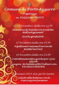 La centralissima Piazza Matteotti sarà la location di tutti gli eventi di Natale organizzati dal Comune di Porto Azzurro, in collaborazione con le diverse associazioni del paese.