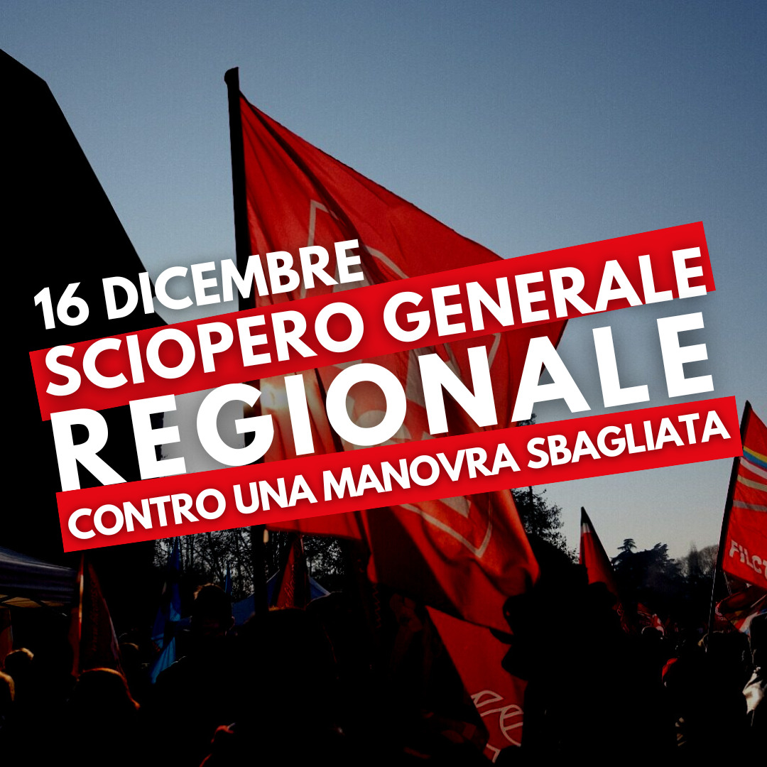Per venerdì 16 dicembre Cgil e Uil della Toscana hanno proclamato una sciopero generale dei settori privati e pubblici. Lo sciopero è per l’intera giornata, o comunque per l’intero turno di lavoro.
