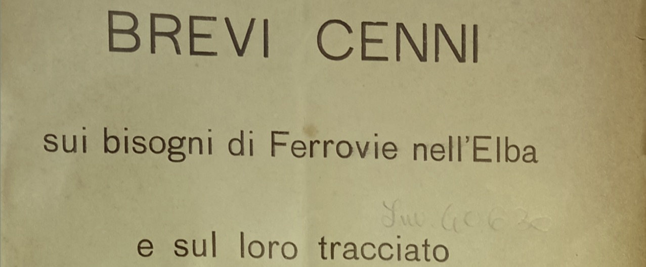 (Prima di copertina di “Brevi cenni sui bisogni di ferrovie nell’Elba e sul loro tracciato” F. Le Maire. Miscellanea 66. Biblioteca comune Portoferraio )