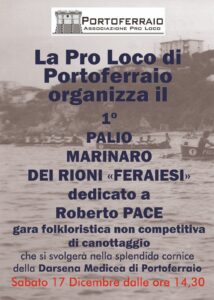 Sabato 17 dicembre si terrà la prima edizione del Palio Marinaro dei Rioni “Ferajesi”, organizzato dalla Pro Loco di Portoferraio, con la collaborazione della Capitaneria di Porto e della Cosimo de’ Medici.