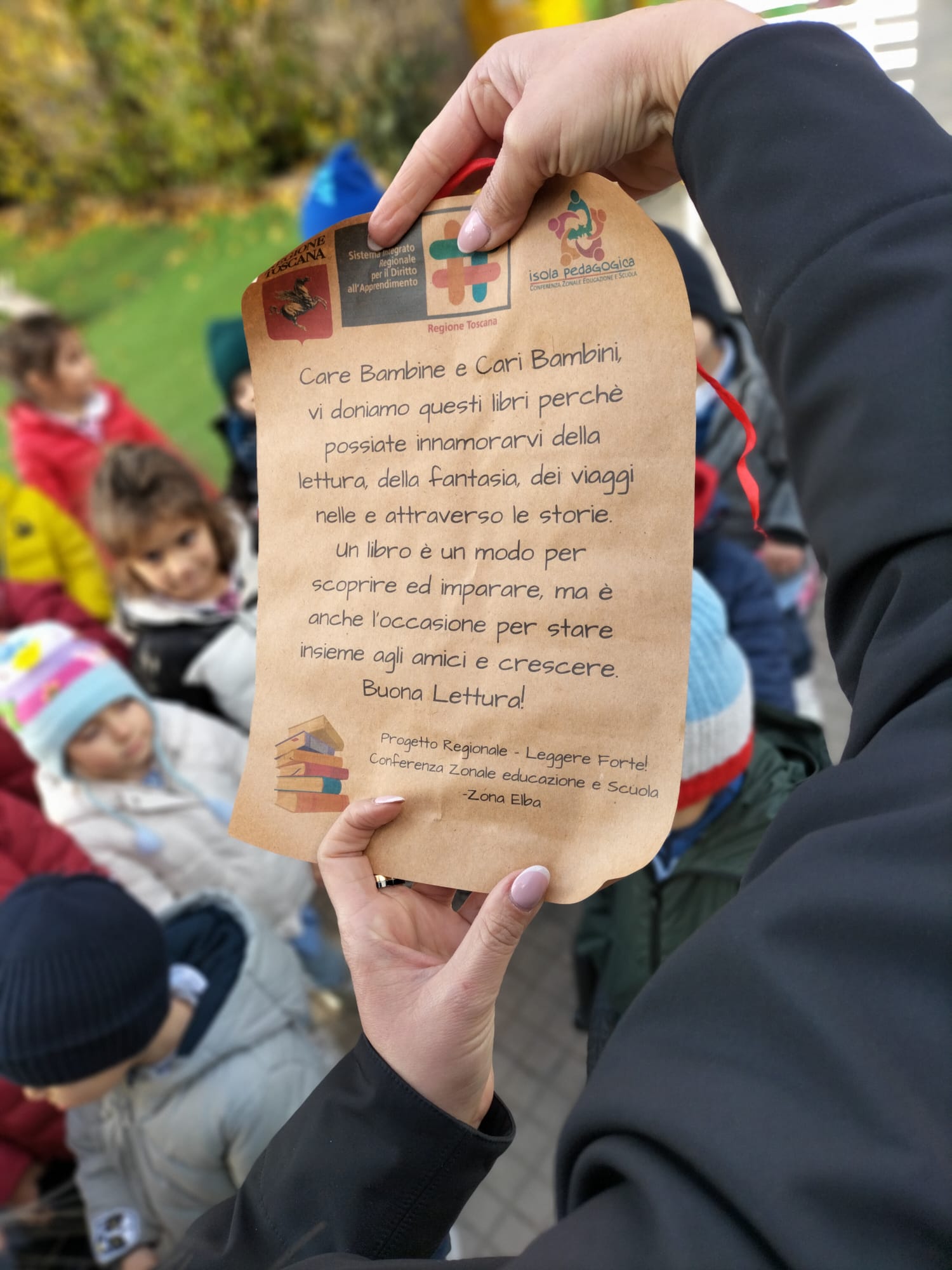 Lunedì 12 e martedì 13 dicembre 2022 il presidente della Conferenza zonale per l’istruzione Chiara Marotti e la responsabile del coordinamento pedagogico ed educativo della stessa Conferenza Lisa Giacomelli hanno consegnato libri ed albi illustrati negli asili nido e nelle scuole per l’infanzia, sia statali che paritarie, di tutta l’isola. I ‘servizi’ che hanno beneficiato della distribuzione sono stati complessivamente 19. I testi sono stati acquistati grazie ad un finanziamento di 1500 euro della Regione Toscana legato al progetto ‘Leggere: forte! Ad alta voce fa crescere l’intelligenza’, un’iniziativa attiva dal 2019 che non si è fermata neanche nel periodo dell’emergenza Covid.
