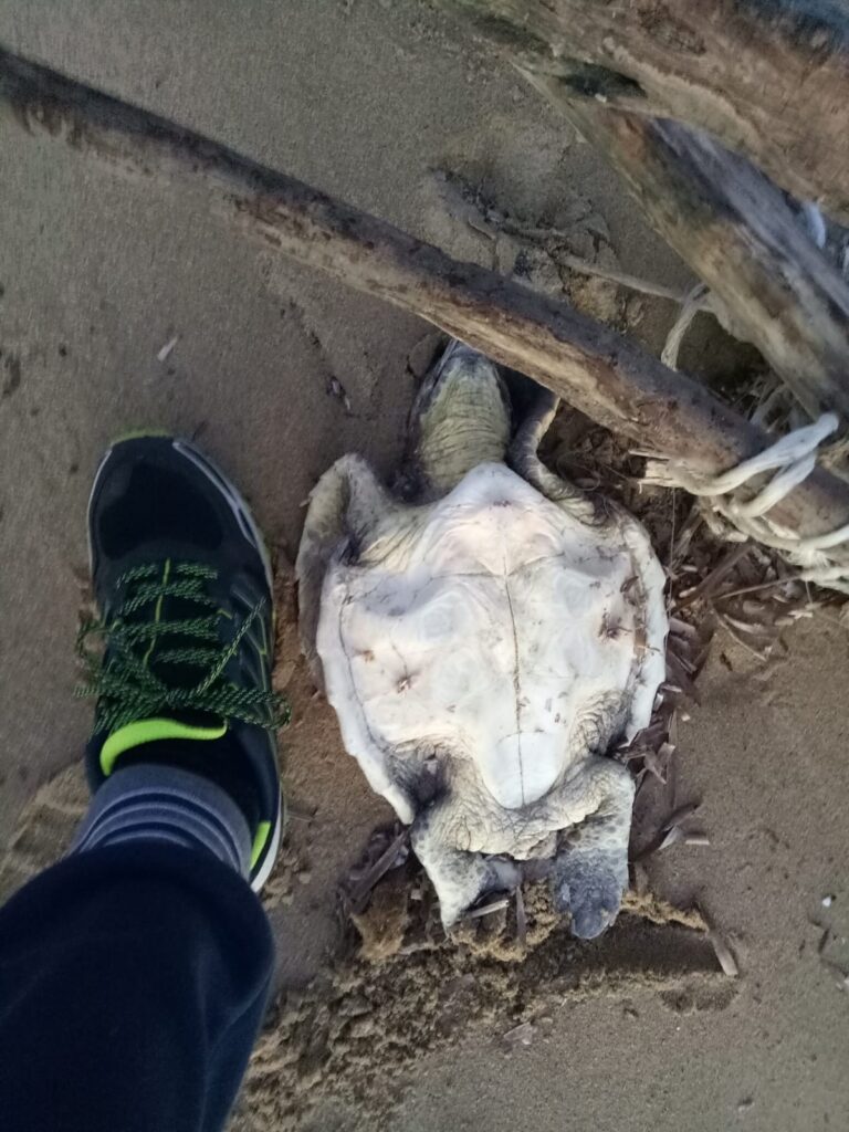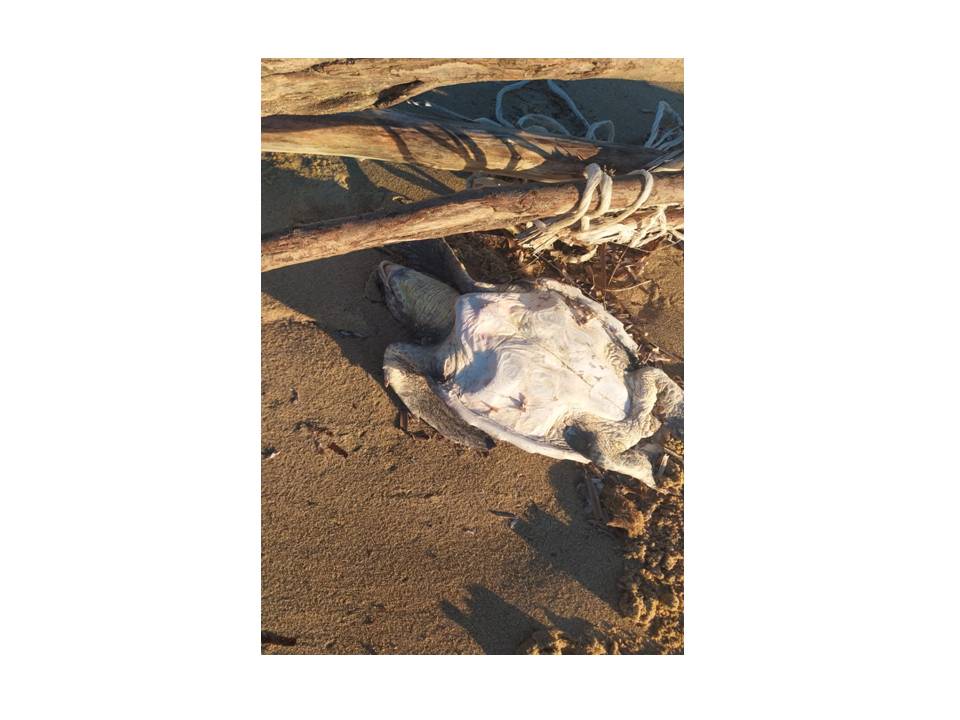 Barsaglini sottolinea che «Da un’analisi sommaria si tratta di un giovane esemplare, morto da poco, 30/35 cm di lunghezza del carapace, con presenza di una lenza da pesca ingerita che la attraversa completamente (entrata dalla bocca e fuoriuscita dalla cloaca) e che si era aggrovigliata ad una corda che legava insieme alcuni rami d’albero. Verosimilmente, il tutto ha portato alla creazione di una trappola che, con l’ulteriore complicità delle mareggiate dei giorni scorsi, si è rivelata mortale per questa giovane tartaruga marina».