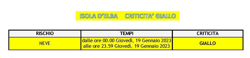 La Sala operativa della protezione civile regionale ha emesso un codice giallo per neve esteso a tutta la Toscana per tutta la giornata di giovedì 19 gennaio.