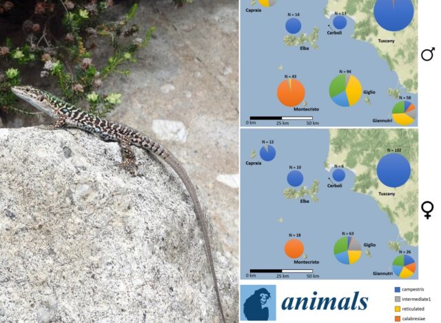 Per l’analisi genetica, dal 2014 al 2021 sono stati raccolti al Giglio, Capraia, Giannutri, Montecristo, Cerboli e Isola d’Elba 29 campioni di tessuto, prelevati dall’apice della coda delle lucertole che poi sono state rilasciate,. Gli scienziati spiegano ancora: «Abbiamo ottenuto con successo 24 sequenze di cytb dai nostri campioni. L’isola d’Elba è stata esclusa dall’analisi a causa della qualità molto bassa delle sue sequenze cytb». Gli esemplari provenienti da Cerboli, Giannutri e Montecristo appartengono al clade tirrenico: « Nello specifico, su queste isole si trovano quattro aplotipi: due di Montecristo, uno di Giannutri e uno di Cerboli». Ma dall’analisi è emerso un nuovo clade non descritto, ben differenziato dai precedenti: «Questo clade comprende tutti gli esemplari delle isole del Giglio e della Capraia. Il clade Giglio-Capraia appena identificato ha 8 aplotipi unici che non si trovano da nessun’altra parte nell’areale di P. siculus. Questi aplotipi sembrano essere molto vicini tra loro e imparentati con il clade adriatico. Vale la pena notare che Giglio e Capraia mostrano anche un’elevata distanza genetica (p‐distanza) dalle popolazioni continentali di P. siculus: -7,5% dal clade adriatico e 8,7 – 9,1% dal clade tirrenico e che c’è anche una certa divergenza tra gli aplotipi delle due isole (5,4%)».