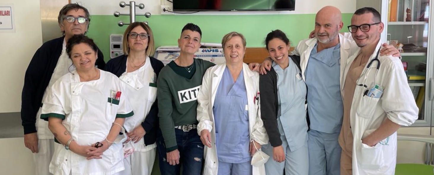 In foto una parte del personale del reparto: (da sinistra) Claudio Russo, Roberta Cini, Simona Sottile, Silvia Isidori, Lara Frediani, Sara Martelloni, Luca Barsotti e Gabriele Borelli.