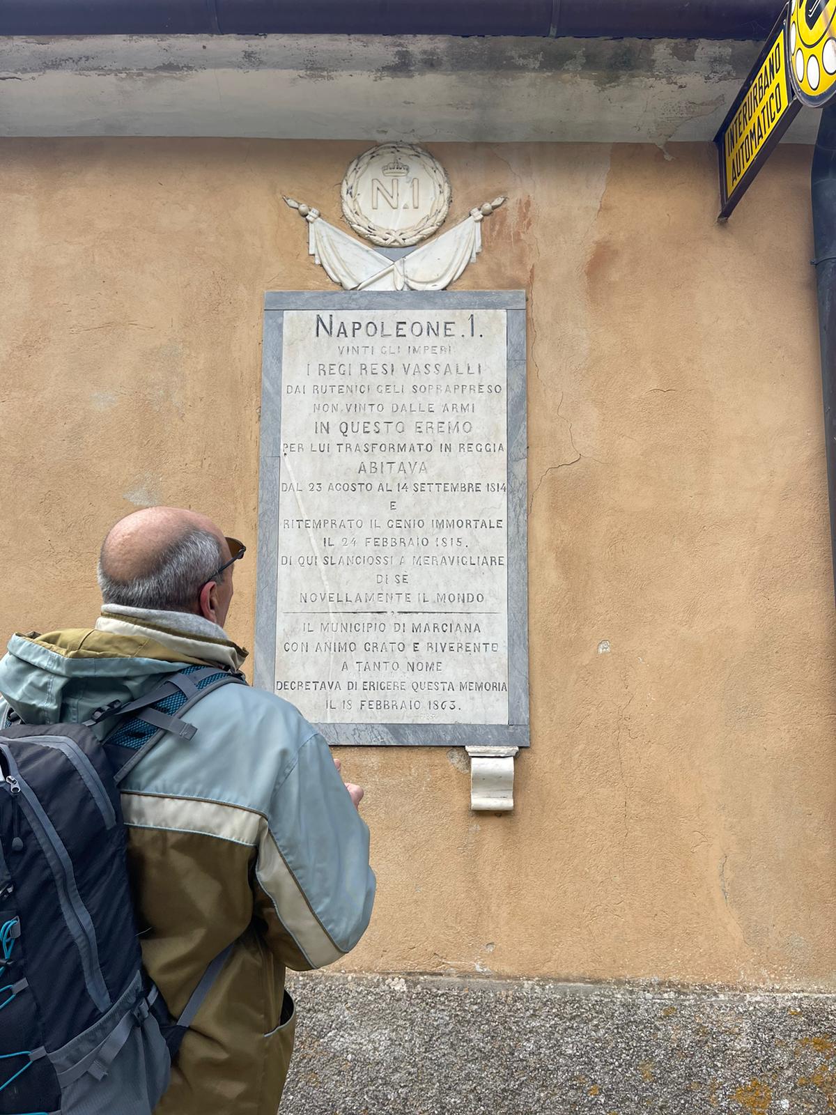 Di grande rilievo, sia storico che sociale, è la permanenza dell‘Imperatore francese Napoleone Bonaparte nell’estate del 1814. Egli risiedette nel romitorio, piccolo edificio a destra del Santuario, insieme alla propria amante. Scelse questo luogo per diverse motivazioni strategiche: all’inizio del 1804 venne installata presso il masso dell’Aquila, facilmente raggiungibile da lì, una postazione francese del telegrafo che permetteva comunicazione a lungo raggio. Inoltre, avendo visibilità su Piombino, Livorno e Capo Corso aveva la possibilità di tenere sotto controllo il mare che circonda l’isola. A testimonianza della sua permanenza vi è una targa, posta proprio sul muro del romitorio, e il racconto di Gabriele d’Annunzio: “Il compagno dagli occhi senza cigli”.