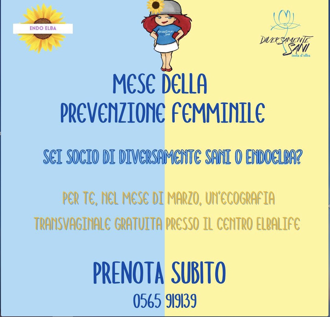 Parte oggi la campagna di prevenzione combinata di Diversamente Sani e EndoElba. Due associazioni che operano sul territorio elbano trattando tematiche apparente molto diverse ma in realtà correlate: cancro ed endometriosi. Infatti, come è possibile vedere dalla campagna di sensibilizzazione partita il 15 febbraio sui social e sui siti web delle due associazioni, purtroppo può esserci correlazione tra le due patologie ma soprattutto con un’ecografia transvaginale è possibile in un solo controllo fare diagnosi precoce e fare la differenza. Proprio per questo da oggi sono disponibili presso il Poliambulatorio Elbalife di Portoferraio 100 ecografie gratuite per chi detiene la tessera socio o Amico di Diversamente Sani 2023 oppure la tessera socio 2023 di EndoElba. Il motto di Diversamente Sani è “Insieme si vince” e quale miglior modo se non unendo le forze tra associazioni? Per ulteriori informazioni vi rimandiamo ai social delle due associazioni e ai loro siti web.