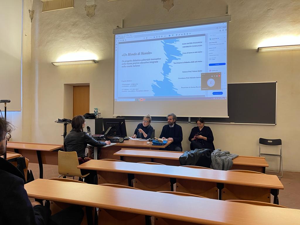 Nella sua pagina facebook, il professor Michele Intorcia, fa sapere che All’Alma Mater Studiorum dell’Università di Bologna, è stata discussa la prima tesi magistrale sul progetto scolastico editoriale Un Mondo di Nuvole. Tra le altre cose il professore ringrazia “Serena Buccioli, laureata con 110 e lode, gli professoressa Valeria Rubbi dell’Alma Mater Studiorum dell’Università di Bologna, relatrice della tesi”.