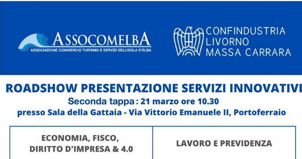 Prosegue il roadshow per presentare i servizi innovativi dedicati alle aziende elbane. Dopo la prima tappa, dedicata alla consulenza in ambito GDPR e privacy, risparmio energetico, sicurezza, formazione dei lavoratori impiegati nei diversi comparti del commercio del turismo e dei servizi, il prossimo 21 marzo sarà l’occasione per un confronto sul tema dei finanziamenti comunitari e regionali e il servizio per la gestione delle risorse umane.