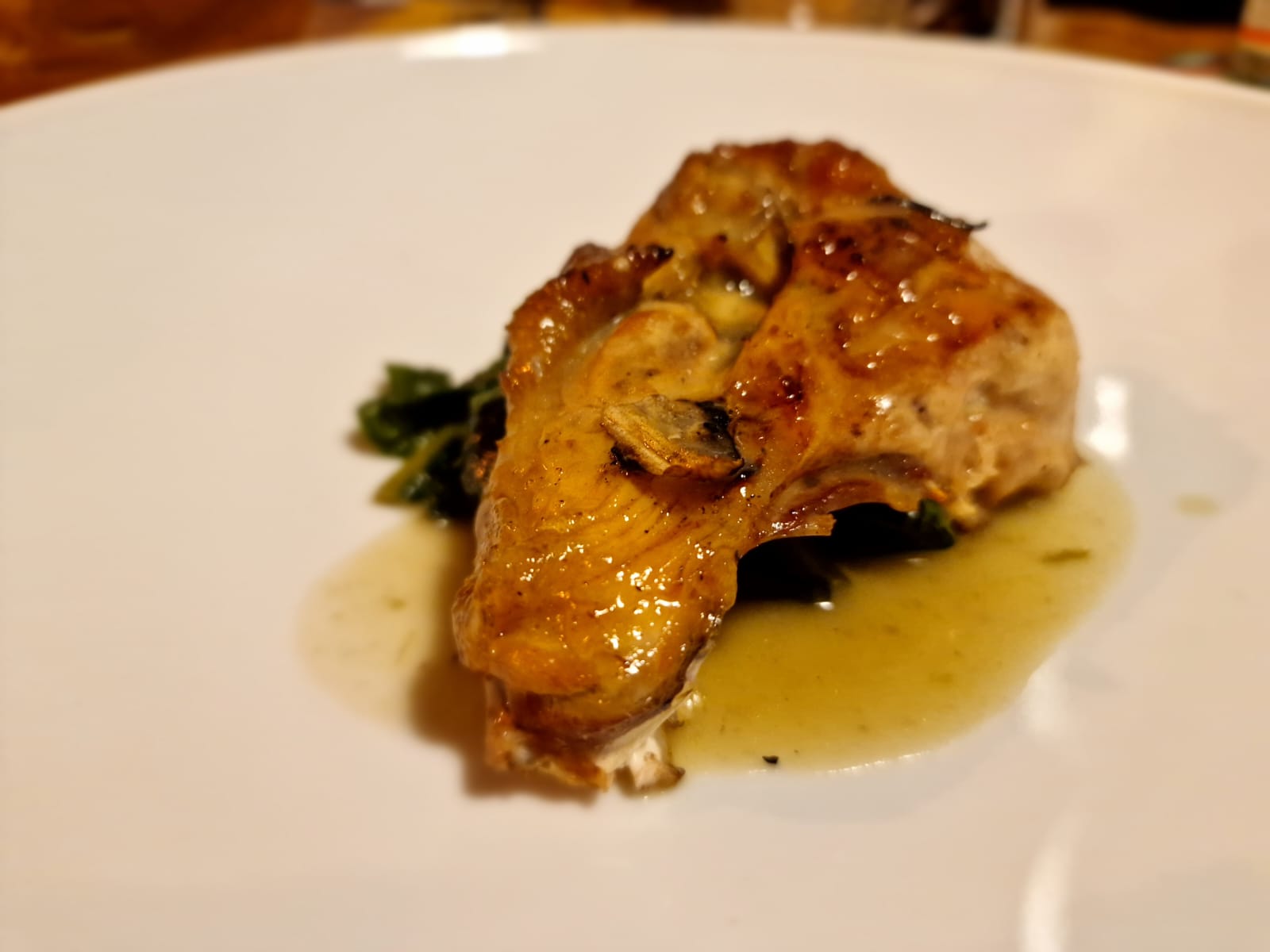 faraona cotta al forno e affumicata con erbe dei prati elbani