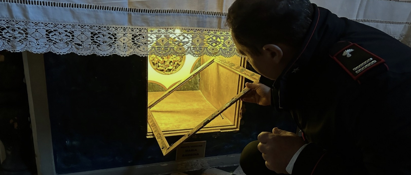 Dopo aver infranto i vetri delle teche sottostanti ai due altari minori e gettato a terra gli oggetti sacri dall’altare principale, accortosi della presenza di telecamere, l’uomo le ha sradicate, tentando poi di occultarle in un angolo remoto del Duomo.