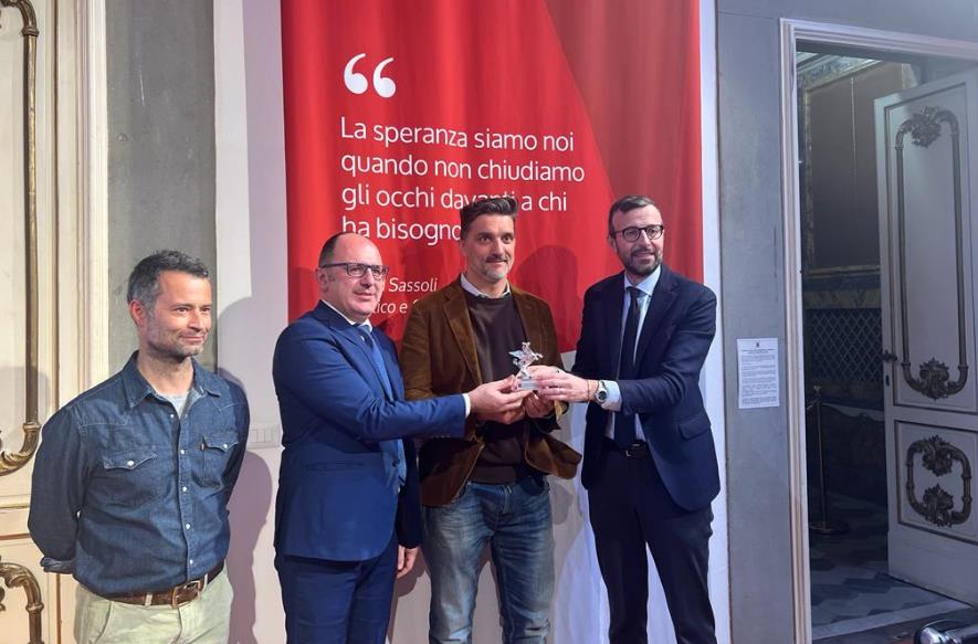 Alla fine della conferenza stampa Antonio Mazzeo ha consegnato una riproduzione del Pegaso al rappresentante della Aps Gruppo Elba, organizzatore della manifestazione.