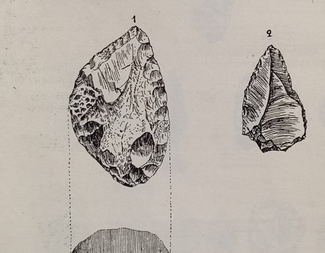 1) Asce a mano o amigdale: sono il resto di grossi noduli di selce, scheggiati ai bordi per ricavarne schegge più piccole.