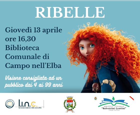 Giovedì 13 aprile, alla Biblioteca comunale Balestrini Gentini di Campo nell’Elba ci sarà la proiezione di Ribelle – The Brave, film del 2012 diretto da Mark Andrews, Brenda Chapman e Steve Purcell vincitore del premio Oscar 2013 come Miglior film d’animazione.