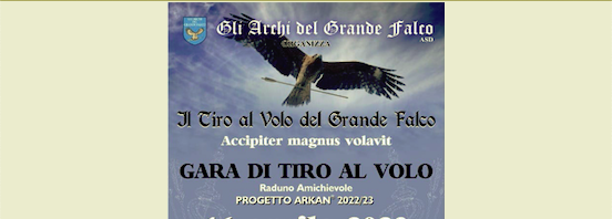 Gli Archi del grande Falco hanno il piacere di organizzare per la seconda volta,la gara di Tiro al Volo del Progetto Arkan tiro dinamico CSEN,(quest’anno raduno amichevole il prossimo nazionale )a Portoferraio in loc.San Martino, domenica 16 aprile negli orari come da locandina (meteo permettendo).