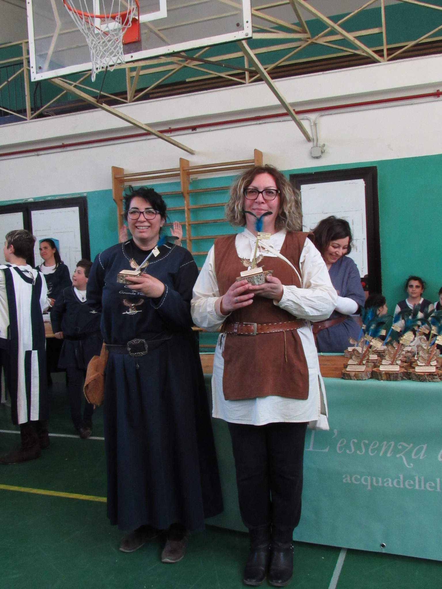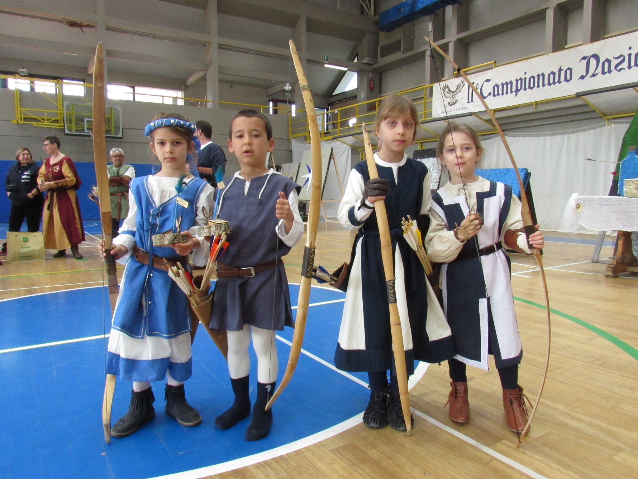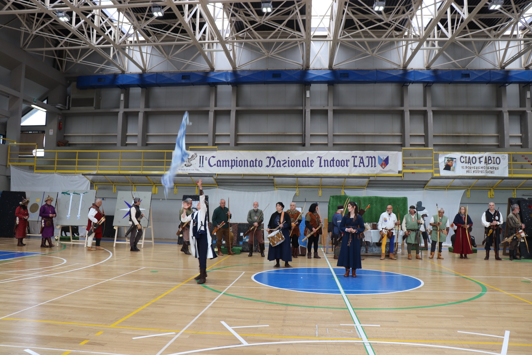Bellissima sfilata di apertura gara con tutti gli arcieri partecipanti in abito storico, accompagnata da tamburi fin dentro il Palazzetto ,con la nostra giocoliera Peria Irene ed il nostro ormai arruolato sbandieratore Mazzi Tommaso , dopodiche’ l’ inizio tiri eseguito dalle nostre bellissime ancelle Teresa Pacini,Alice Lisanti ,Elisa Romano accompagnate dal nostro cavaliere Leonardo Zamboni tutti e 4 di 7 anni.Il tiro d’inizio di buon auspicio fatto da questi 4 bellissimi e bravissimi bambini in tenuta storico medievale , è stato accolto con un caloroso applauso . Un altro applauso è stato fatto inoltre prima dell’inizio gara ricordando e salutando il caro amico e arciere Valerio,Monari , scomparso da pochissimi giorni .