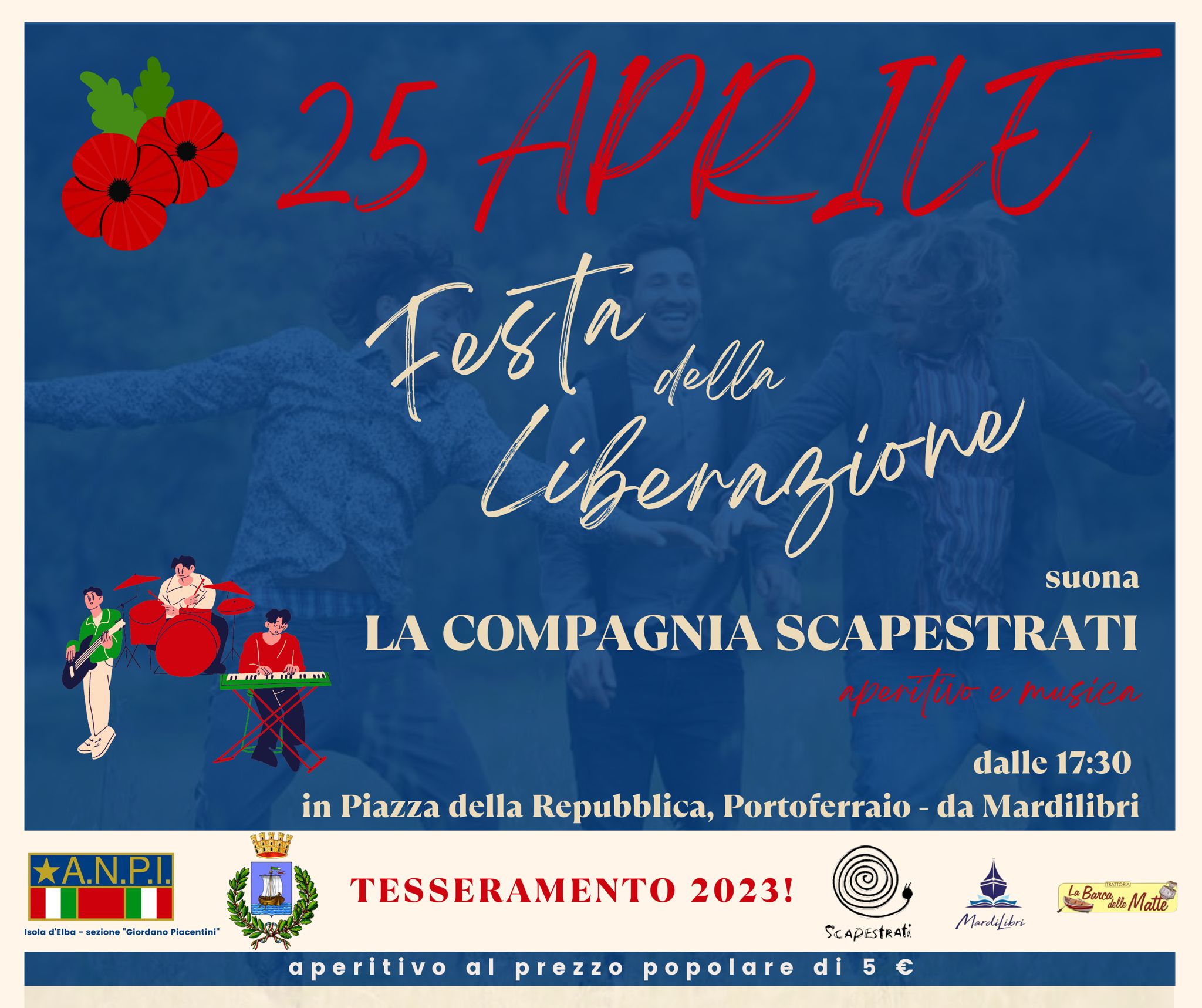 A partire dalle 17,30, in piazza della Repubblica, davanti alla libreria Mardilibri, l’ANPI con il patrocinio del comune di Portoferraio ha organizzato un pomeriggio di letture resistenziali e musica a cura di Francesco Porro e la Compagnia Scapestrati. Sarà inoltre possibile consumare a un prezzo popolare un aperitivo resistente preparato dalla Barca delle Matte. Un modo per riflettere attraverso la musica e le parole sul valore civile, storico e morale della Festa della Liberazione, un momento fondativo della nostra democrazia nata dalla Costituzione antifascista.
