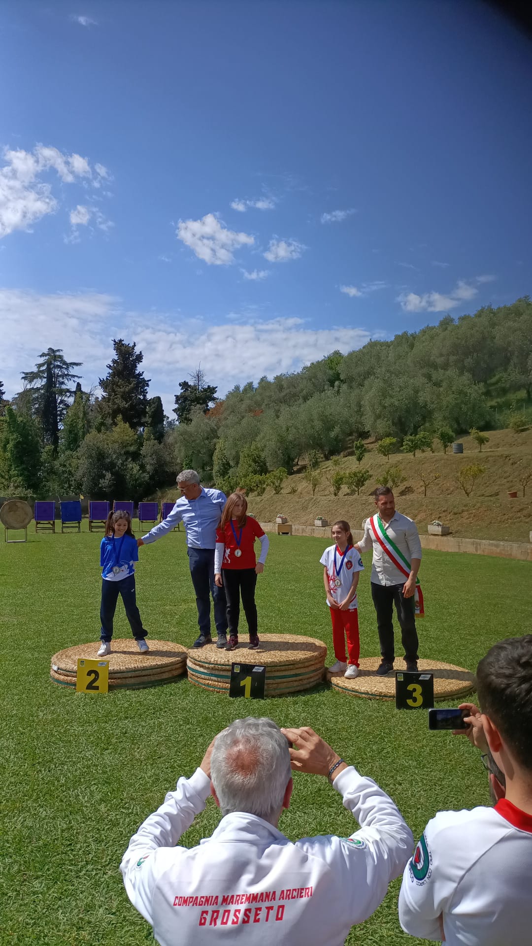 Strepitosa giornata al Trofeo Pinocchio,fase regionale Fitarco di Capezzano Pianore Lido di Camaiore (Lu) con 8 atleti in gara , tutti a podio , chi singolarmente e chi con la squadra .Intanto vittoria a Squadra ragazzi 2012 con Palella Lorenzo, Ferrini Leonardo e Cafaro Leonardo.La gara ,a 48 frecce, dove vede categorie per età con distanze diverse ,una a 15 mt per i più piccoli e a 20mt per i più grandi si distingue subito con il primo posto di Luca Romano con 414 punti cat ragazzi 2010 e il bellissimo secondo posto di Irene Peria nella cat ragazze 2010 con 423 punti.