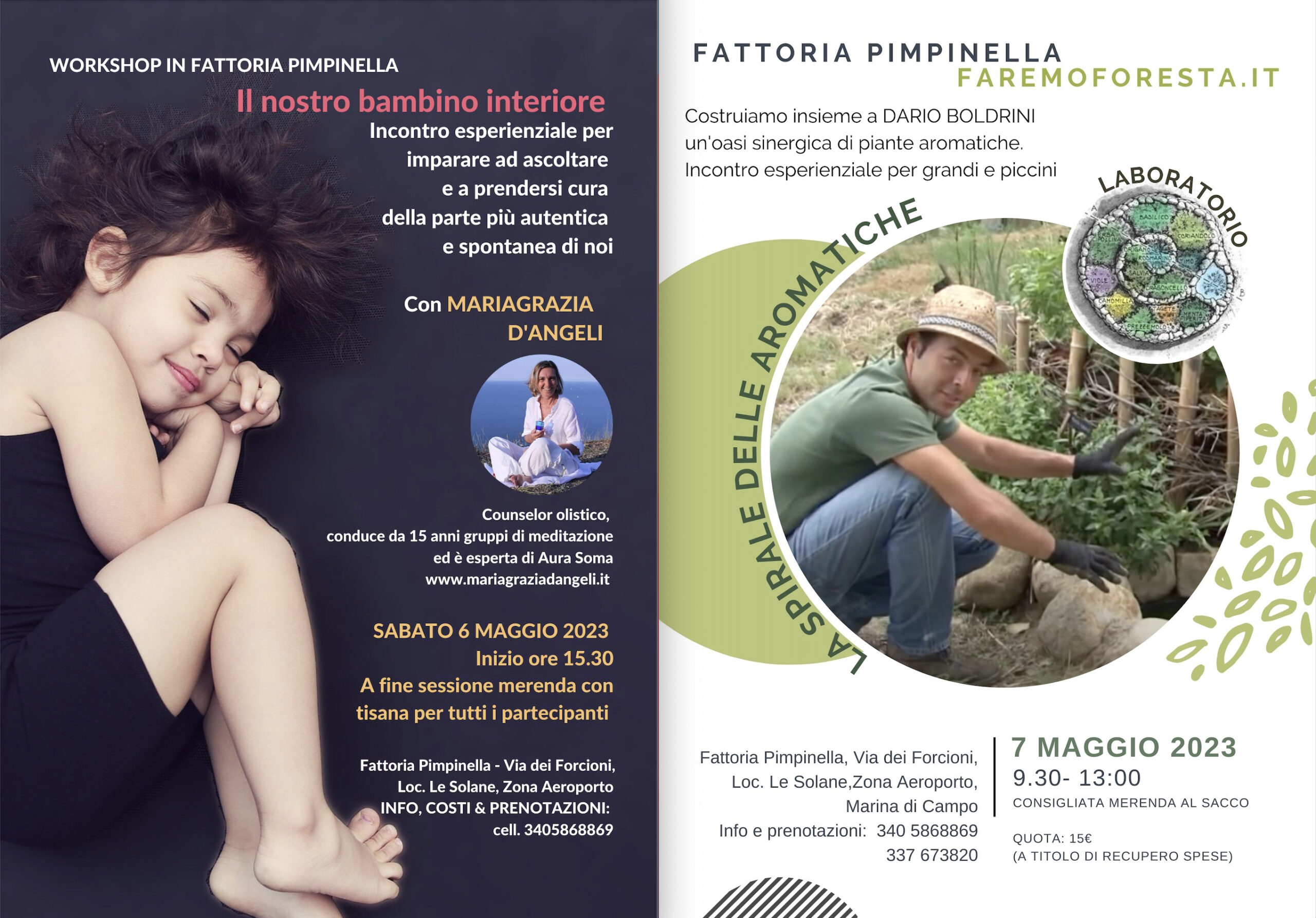 Si inizia sabato 6 Maggio 2023, alle 15.30 con MariaGrazia D’Angeli, operatrice olistica specializzata nella tecnica Aura Soma che condurrà i partecipanti a incontrare “IL NOSTRO BAMBINO INTERIORE”. Un percorso introspettivo che si fa esperienza di guarigione emotiva e di riscoperta del profondo legame con la nostra parte bambina, dove albergano infinite risorse di creatività e leggerezza.