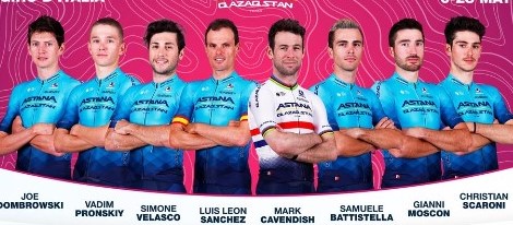 Per le frazioni con tanti chilometri da scalare, oltre che da non escludere per la lotta alla maglia blu, l’Astana porta lo spagnolo Luis Leon Sanchez, il kazako Vadim Pronskiy e lo statunitense Joe Dombrowski.