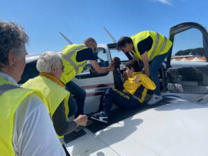 La pattuglia degli aerei leggeri ha cominciato a confrontarsi con l’aria fino dal primo mattino, ospitando ben 48 passeggeri elbani (un vero record di questa iniziativa) con voli multipli o individuali.
