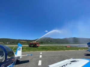 In chiusura i mezzi antincendio dell’aeroporto, messi in funzione dal personale, hanno spruzzato i loro getti d’acqua per salutare tutti gli ospiti che hanno rallegrato la giornata.