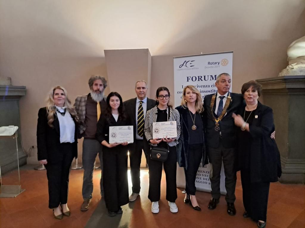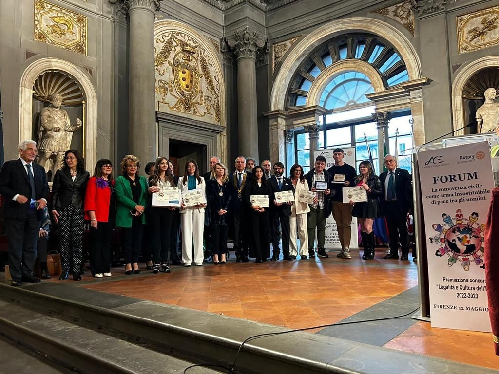 Venerdì 12 maggio a Firenze nel Salone dei Cinquecento di Palazzo Vecchio sono state premiate, le studentesse, Soria Annalisa della 4a Graf, e Cenciarelli Viola della 3a Graf al concorso nazionale “Dove manca il dialogo, la mediazione, la diplomazia, prevale la violenza anche armata che ha nei conflitti la punta massima della sopraffazione ” organizzato dal Rotary LCE, Legalità e Cultura dell’Etica.
