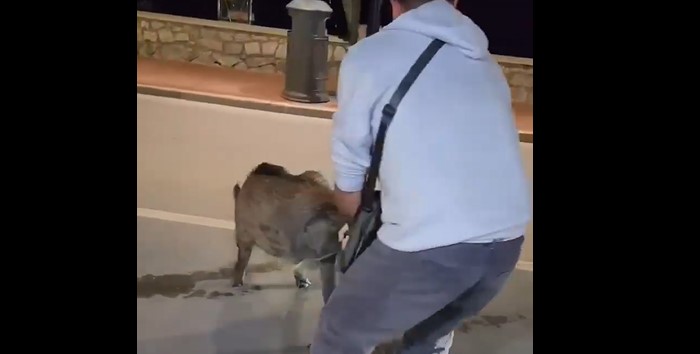 Fa discutere il filmato del cinghiale “preso per le zampe”