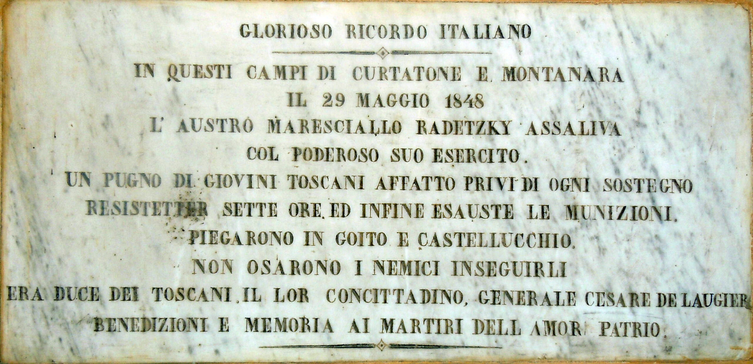La giornata del 29 maggio 1848 ( battaglia di Curtatone e Montanara), è rimasta un titolo di gloria del valore toscano; ma non vanno dimenticati il battaglione regolare napoletano e quello di volontari che si batterono con uguale