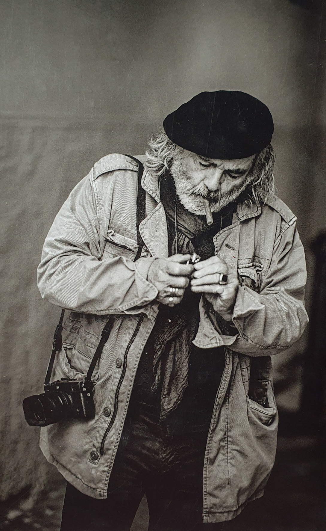 Capelli un po’ lunghi scompigliati dal vento, ingrigiti da una vita lunga e avventurosa sulle strade del Mondo, sigaro, spento, perennemente tra le labbra, un paio di apparecchi fotografici Nikon dotati di “cannoni”-teleobiettivi a tracolla, sguardo intenso e mobilissimo e un sorriso a metà tra il malizioso e lo stupito, dell’eterno fanciullo alla ricerca dell’immagine e dell’emozione, voce roca e profonda: questo è ciò che si coglie di primo impatto conoscendo Pino Bertelli, fotografo da sempre, viaggiatore in tutti i Paesi alla ricerca di attimi fuggenti e di volti da immortalare con un clik, “cittadino del mondo” come ama definirsi, ma alla fine sempre legato alla “sua” Piombino, la sua Itaca alla quale prima o poi ritorna sempre.