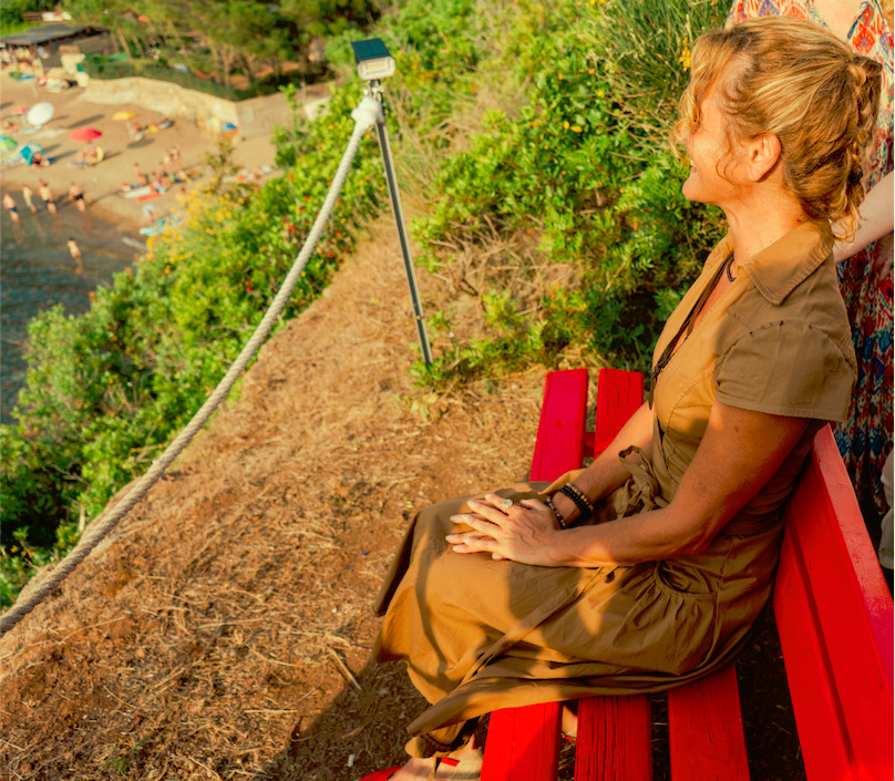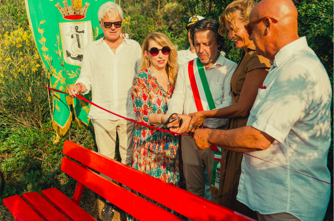 Una passeggiata sulla collina affacciata sopra la baia e la spighetta dell’Innamorata, l’incontro, quasi l’inciampo, con una panchina abbandonata, “triste, solitaria y final” l’avrebbe definita l’inimitabile scrittore argentino Osvaldo Soriano. Si guardano, c’è l’intuizione: “Si può, si deve fare qualcosa”. E’ una panchina, è affacciata su un panorama suggestivo. Il luogo è legato a una leggenda d’amore impossibile. Il pensiero è subito per restaurarla. Per dipingerla di rosso.