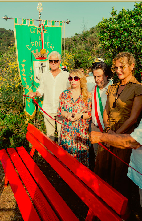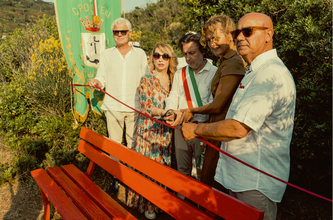 E’ affacciata sulla baia dell’Innamorata, uno dei luoghi più suggestivi del territorio comunale e di tutta l’isola. Non è stato scelto a caso. Il luogo, insieme alla panchina, vuole essere un simbolo. Un richiamo. Quella virgola rossa in mezzo al verde non è solo un segnale d’allarme, il punto esclamativo contro il femminicidio. E’, semmai, un richiamo all’amore degli uomini per le donne.