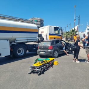 Incidente stradale piuttosto insolito, quello che è avvenuto poco dopo le 16 di lunedì 26 giugno nella zona portuale di Portoferraio. Una VW Golf, per motivi al vaglio degli Agenti accertatori, ha superato la colonna delle auto che stavano per imbarcarsi sul traghetto Toremar, andando a sbattere sulla parte gommata della cabina di guida di un autoarticolato adibito al trasporto di carburante. Alla guida dell’auto c’era una donna, che è rimasta traumatizzata dall’urto, tanto che sono stati chiamati i soccorsi sanitari. Sul posto una autoambulanza della Misericordia di Portoferraio, che – nonostante le condizioni abbastanza rassicuranti della paziente – ha portato la donna al Pronto Soccorso per accertamenti. Nessun danno apparente, invece, per l’autocisterna. I rilievi dell’incidente sono stati effettuati dalla Polizia Municipale di Portoferraio.