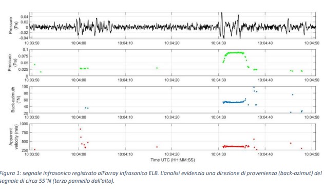 L’analisi dei segnali infrasonico e sismico ha permesso di ricostruire una direzione di provenienza compresa