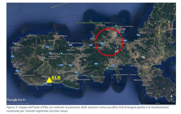 3) installata presso il campo sportivo di Seccheto (Campo nell’Elba) ha registrato un segnale sismo-acustico