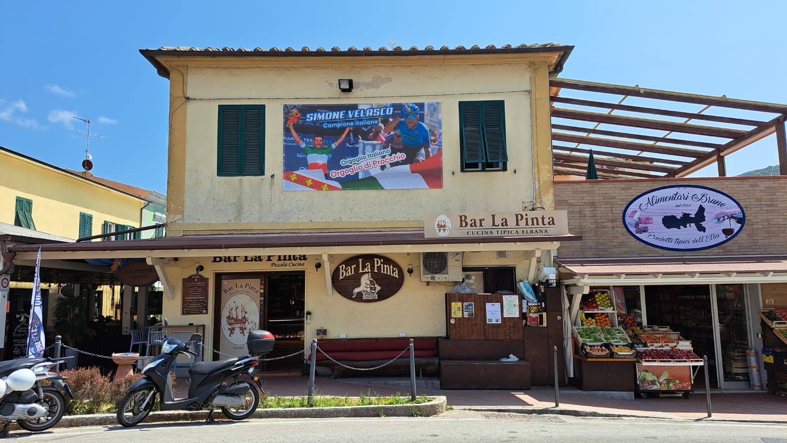 Sono quasi finite le vacanze elbane di Simone Velasco, il ciclista elbano della Astana Qazaqstan che si è appena laureato campione italiano di ciclismo professionistico su strada per l’anno 2023. Dopo la festa al suo arrivo a casa a seguito della sua vittoria in Trentino, i suoi amici/fans di Procchio hanno deciso di immortalare l’evento apponendo sul muro dell’edificio principale che sovrasta la curva di accesso nella frazione marcianese con una gigantografia dedicata al campione tricolore.