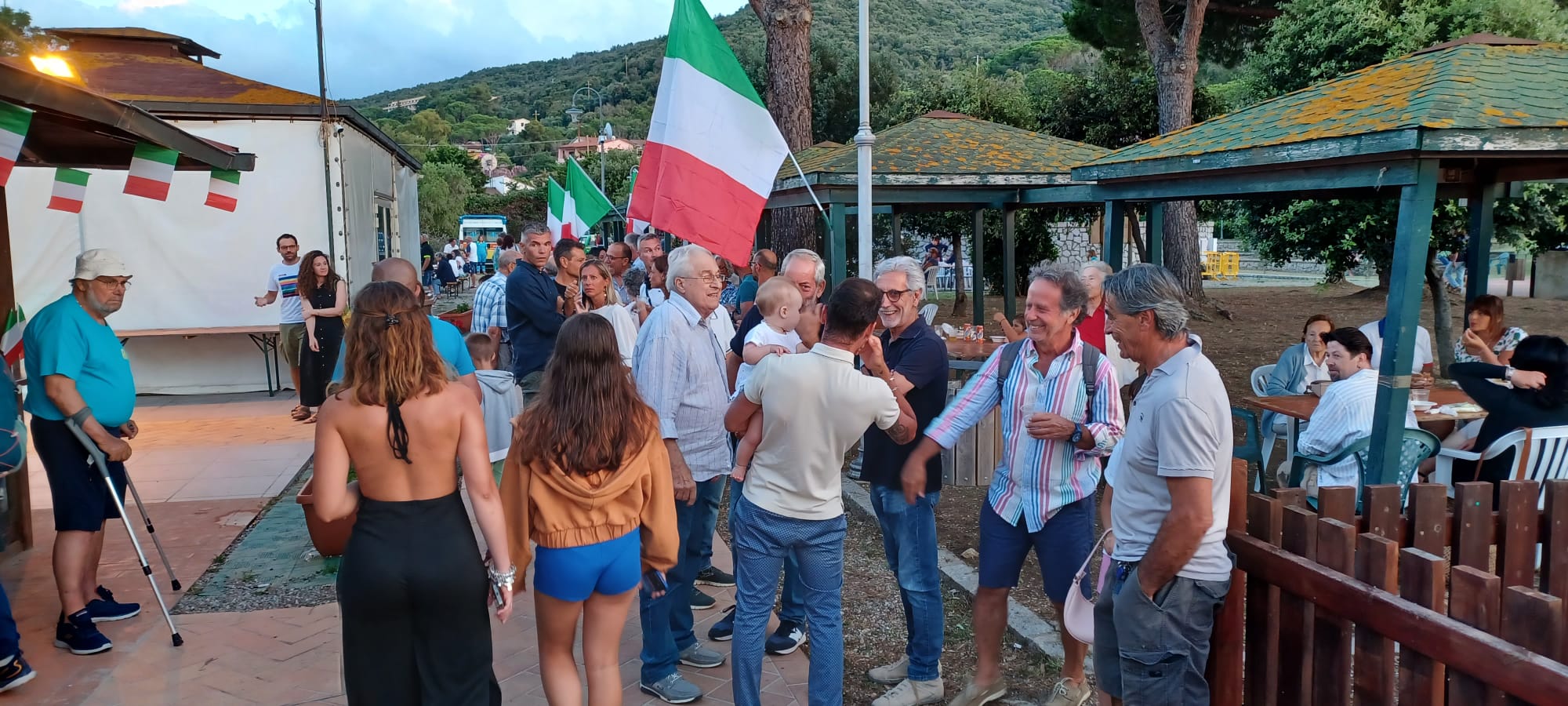Lo sfondo illuminato di verde, bianco e rosso e lo stendardo del Comune di Marciana hanno fatto da scenografia allo spettacolo. Dopo i saluti iniziali del Sindaco di Marciana, Simone Barbi, è salito sul palco il campione Simone Velasco con la maglia tricolore. Una presenza autentica e luminosa nella sua semplicità, che ha trasmesso al pubblico ciò che fa grande uno sportivo: la disciplina, l’impegno e la grande umanità.