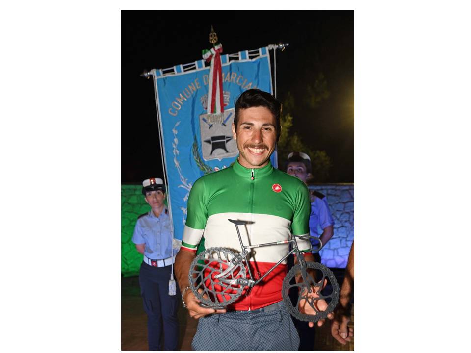 Quindi è stata la volta dei saluti dell’Elba Bike a nome del Presidente Monica Maltinti con il Direttore Tecnico Enrico Lenzi e i ragazzi dell’associazione, del Presidente della G.A.T. – il Sindaco di Capoliveri Walter Montagna – e del Maestro Luca Polesi, che ha donato una splendida opera realizzata appositamente per il campione. In conclusione, il Sindaco di Marciana e i Consiglieri comunali di Procchio, Maurizio Mazzei e Pietro Mazzei, hanno consegnato a Simone Velasco una targa commemorativa per la sua vittoria.