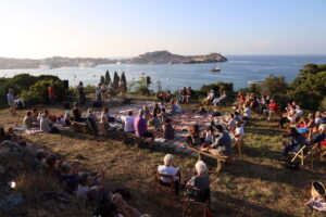 Si può veramente dire che i concerti abbiano avuto lo stesso risultato delle visite guidate: il pubblico presente, se pure molto vario per età, estrazione sociale e nazionalità, all’unisono, senza particolari istruzioni o indicazioni da nessuno, ha spontaneamente collaborato con l’organizzazione, a tal punto che, al termine dei concerti, la ormai famosa vasta terrazza naturale – quella dove allestiamo lo spazio per offrire presentazioni, corsi, concerti e conferenze – era sgombra di ogni cosa. Un po’ come sulle note di una musica magica, le sedie sono state portate via, teli e tappeti sono stati ripiegati, i divanetti e i cuscini riposti. È stato come tornare indietro nel tempo, agli albori della collaborazione tra la Fondazione Villa romana delle Grotte con il Comune di Portoferraio, insieme con gli archeologi del prof. Franco Cambi.